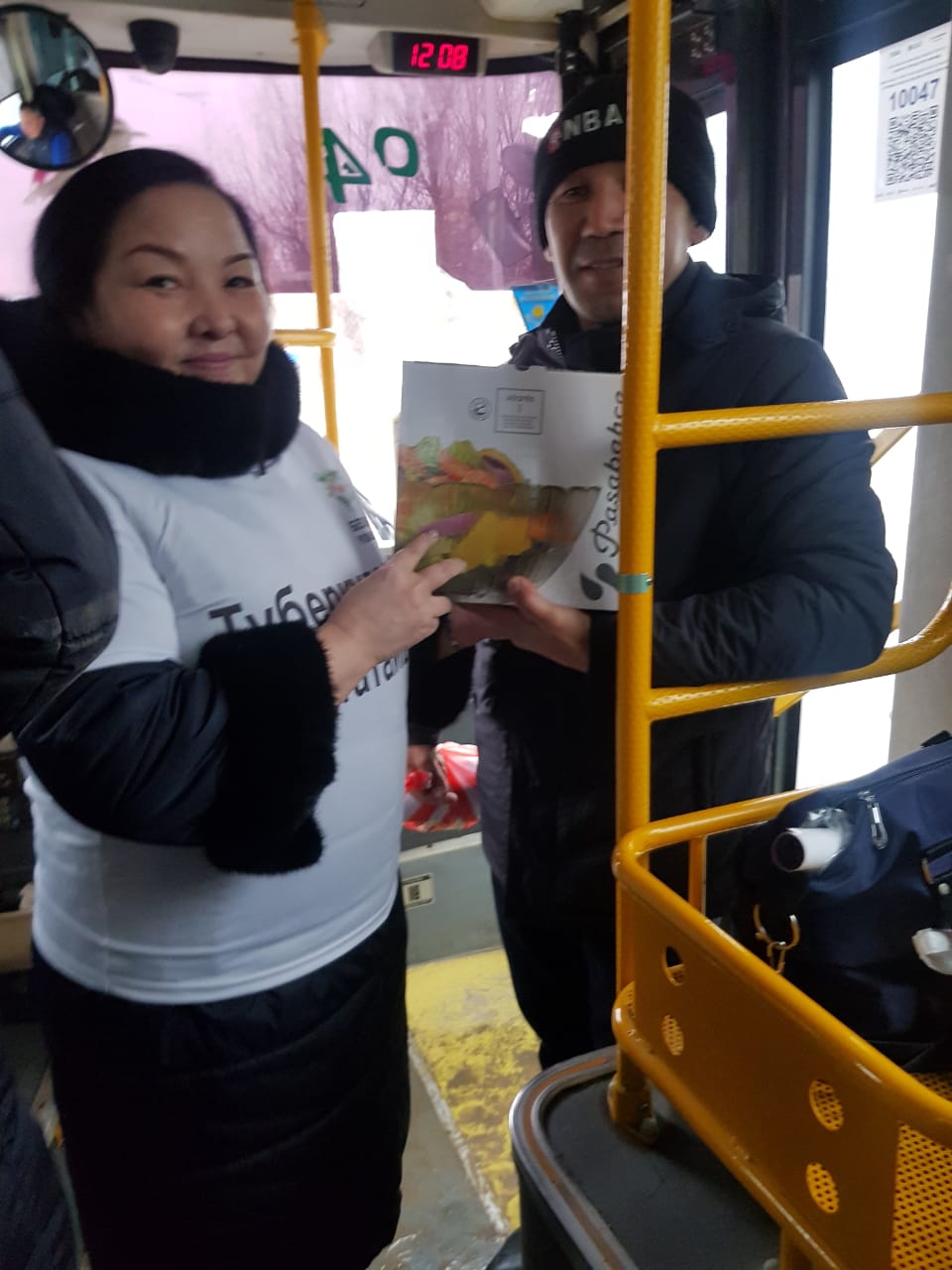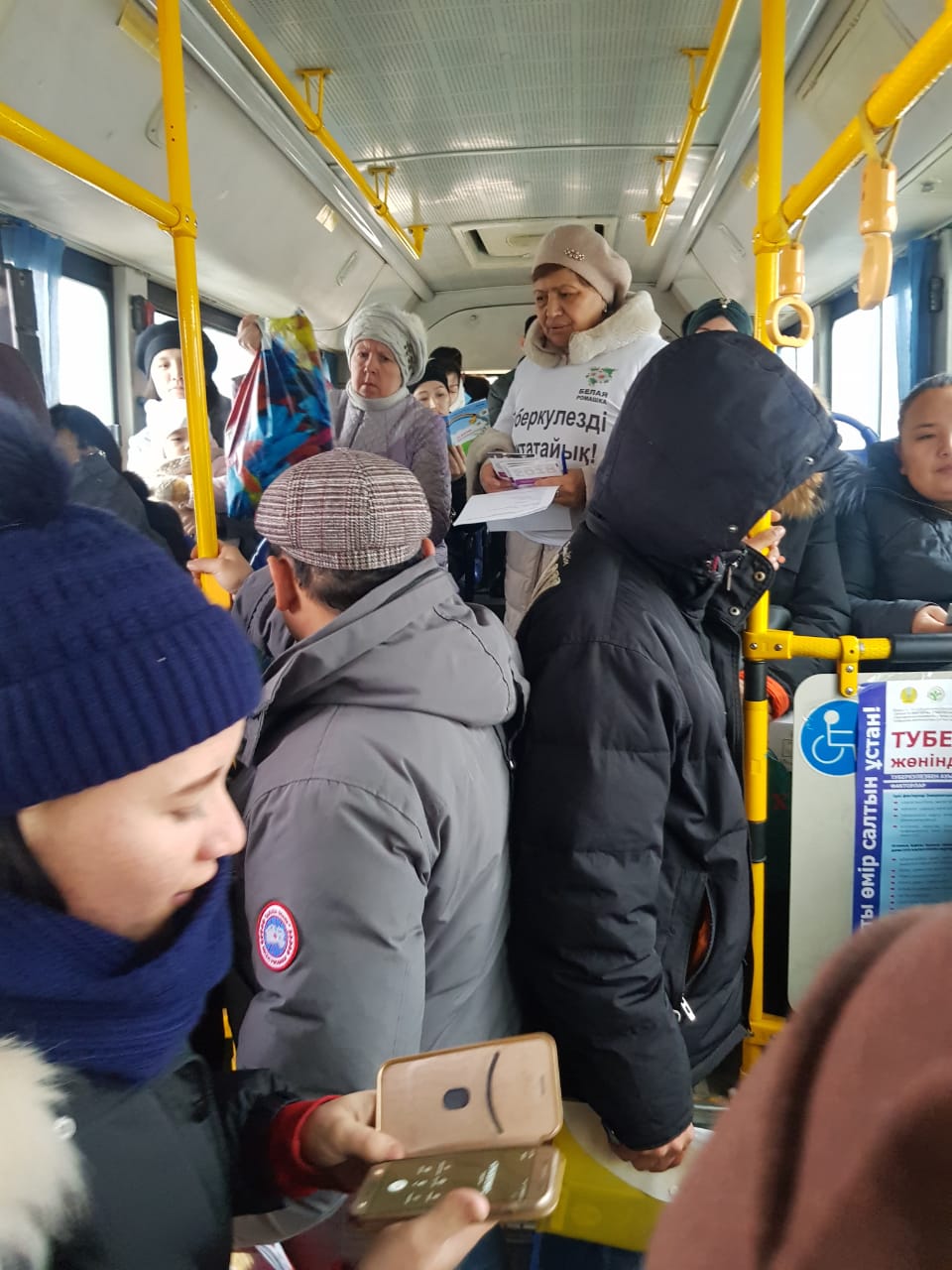 Акцияда мамандар жолаушылар арсында туберкулездің алдын алу тақырыбында лекция, түсіндірме әңгіме жүргізілді, сауалнама жаздырылды, сұрақтар қойылды. Дұрыс жауап берген 21 жолаушыға сыйлықтар берілді. Сонымен қатар ақпараттық- танымдық материалдар таратылды.