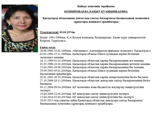 Байқау кеңесінің мүшесі, «Нұр Отан» партиясы облыстық филиалының партиялық бақылау инспекторы